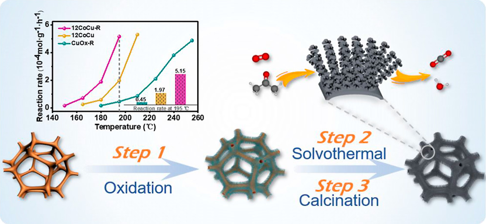 制备了富氧空位的泡沫金属整体式催化剂,为实际工况VOCs催化氧化治理提供技术支撑。(第一作者, Environmental Science & Technology, 2022, 6:1905-1916)