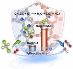 (2)针对制药行业含氯VOCs降解导致催化剂中高温稳定性差及氯中毒的问题,申请人提出构建分子筛包封金属催化剂,实现了二氯甲烷的高效降解并提升催化剂稳定性。